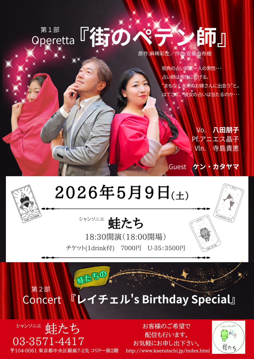 【出 演】ケン・カタヤマ、八田朋子、アニエス晶子(Pf)、寺島貴恵(Vln)