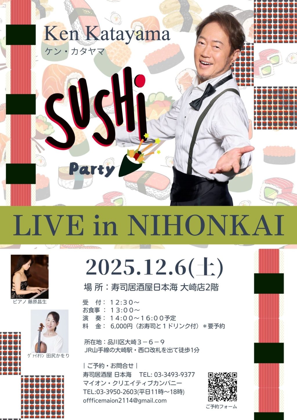 ♪12/6(土) 寿司居酒屋 日本海(大崎)「ケン・カタヤマ Special Live」