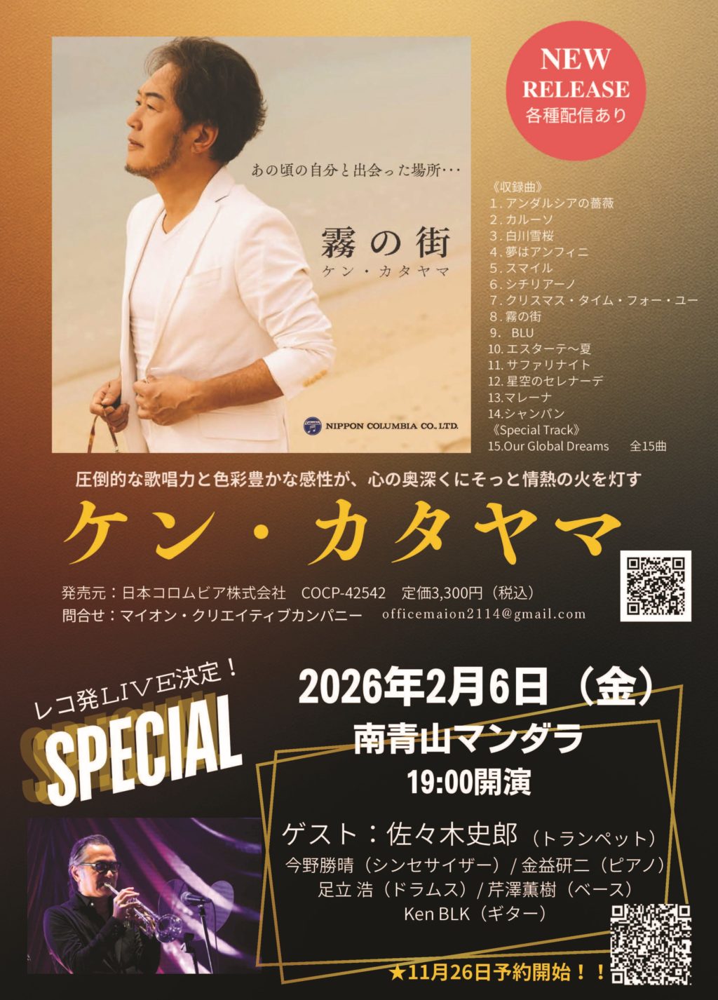 【出演】ケン・カタヤマ、野村エミ、川島豊 中村 力(P)、Yu ma(Vln)