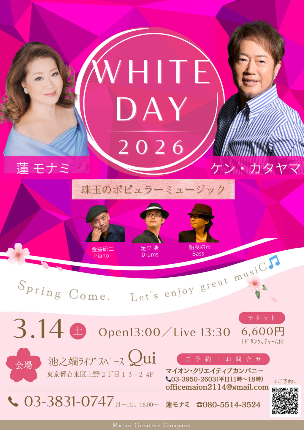 3月14日(土) 池之端Qui 開場13:00 開演13:30 6,600円 (1ドリンク付) |