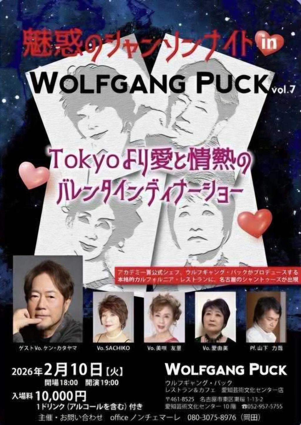 | 2月10日(金) ウルフギャング(名古屋) 開場18:00 開演19:00 10,000円 (ディナー・1ドリンク付) |